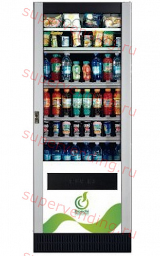 Автомат для продажи снековой продукции, предназначенный исключительно для совместной работы с кофейником в режиме Slave. Автоматы соединяются шлейфом, клавиатура для выбора снековой продукции платежная система находятся на кофейном автомате. Продукция размещается на полках со спиралями за двойным стеклопакетом особой прочности.Автомат оснащен холодильником, поддерживающим температуру до 3 градусов С*, имеет антивандальный корпус и замок. Bianchi BVM 676 выпускается двух видов: Высотой 162 см и 183 см.Первый для совместной работы кофейным аппаратом BVM 952, второй, соответственно, для BVM 972. К недостаткам данного автомата можно отнести конструктивное несовершенство запорного механизма двери.